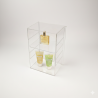Vitrine de 30 à 45 cm de hauteur à poser réalisée en plexiglas 4mm, munie d’une serrure et de 2 tablettes horizontales intérieures coulissantes et réglables sur la hauteur, se décline en différents format.
