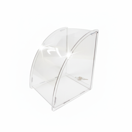 Vitrine réalisée en PET transparent, sa forme ovale et design est idéale pour la mise en avant de produits.