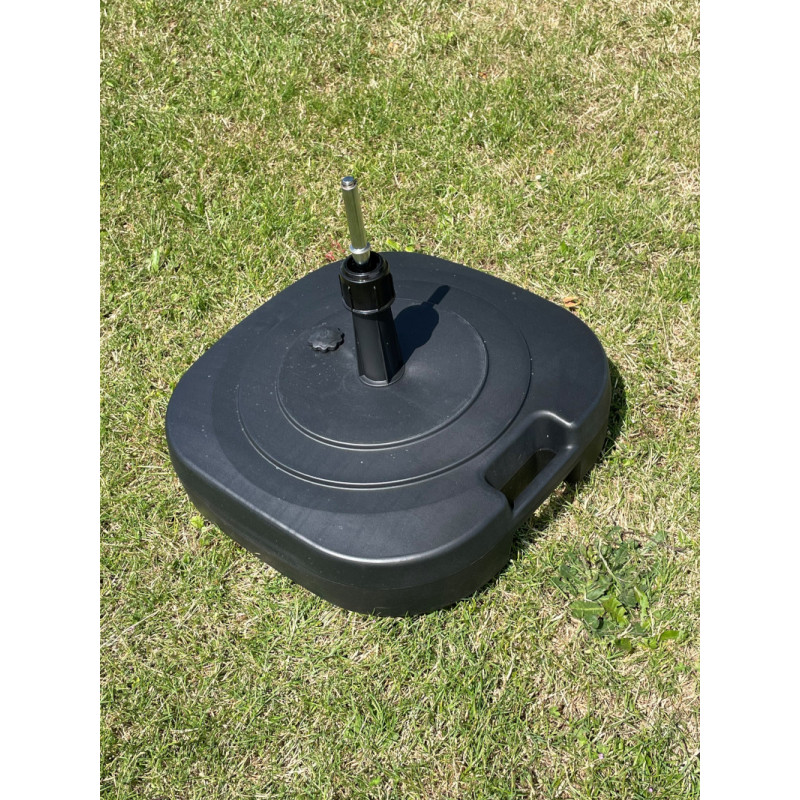 Le pied de parasol à un réservoir d’eau adapté à toutes les surfaces planes et offre une stabilité optimale. Grâce à la poignée et aux larges roues de transport, vous pouvez facilement déplacer le réservoir d’eau à l’emplacement souhaité, même lorsqu’il est rempli d’eau !